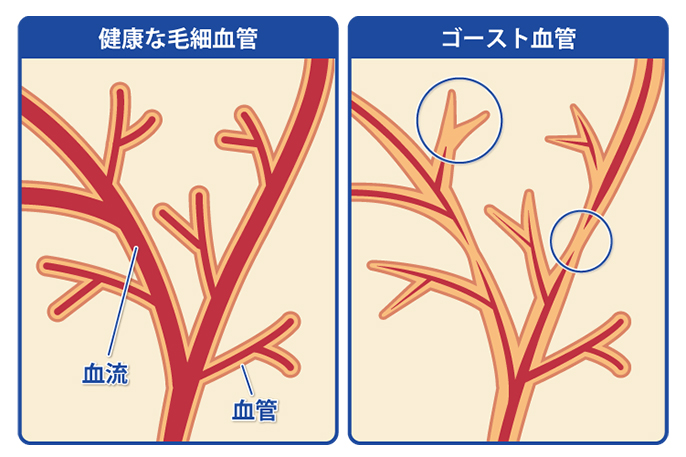 毛細血管はとても繊細で、加齢や生活習慣で細くなったり、ゴースト血管化して減ったり、もろくなるということが日々起きています。